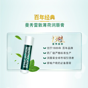曼秀雷敦(Mentholatum)薄荷润唇膏养护防干裂防脱皮保湿舒缓 修护双唇3.5g(无色无味 修护疼痛) |