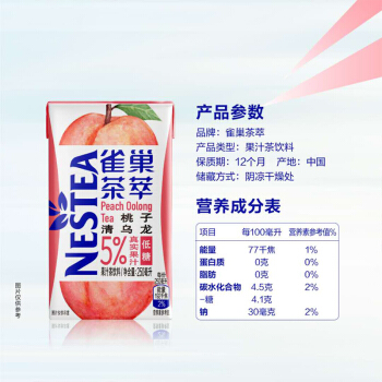雀巢(Nestle)茶萃桃子清乌龙 果汁茶饮料250ml*24包 整箱