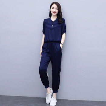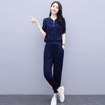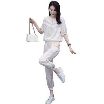 杰芭锅 卫衣套装女韩版新款女夏季修身洋气时尚运动气质女神范九分裤子宽松显瘦休闲两件套潮 米白色 XL |