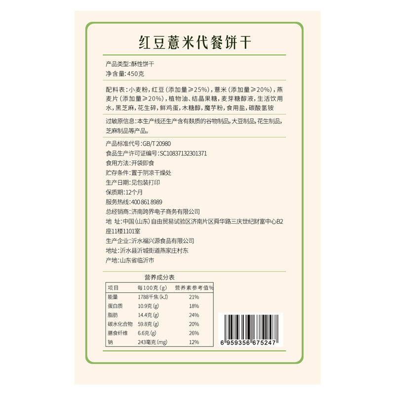 红豆薏米代餐饼