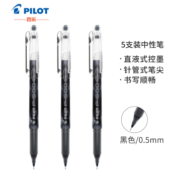 日本百乐(PILOT)BL-P50/P500中性笔0.5mm顺滑针嘴水笔财务考试用黑色 5支装