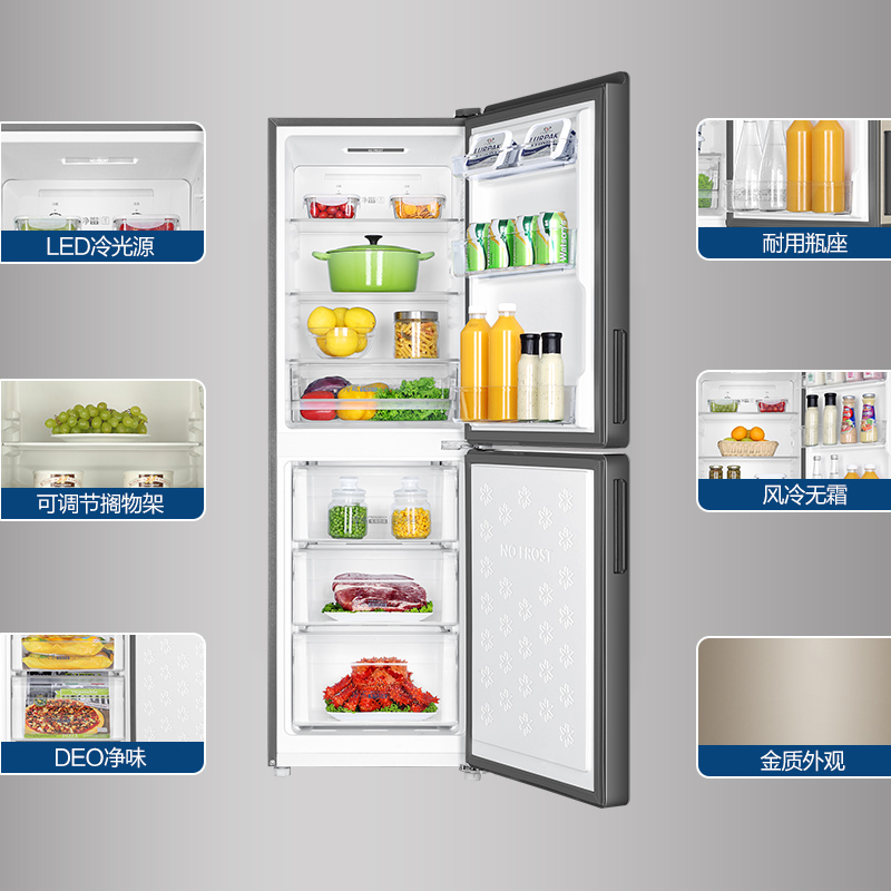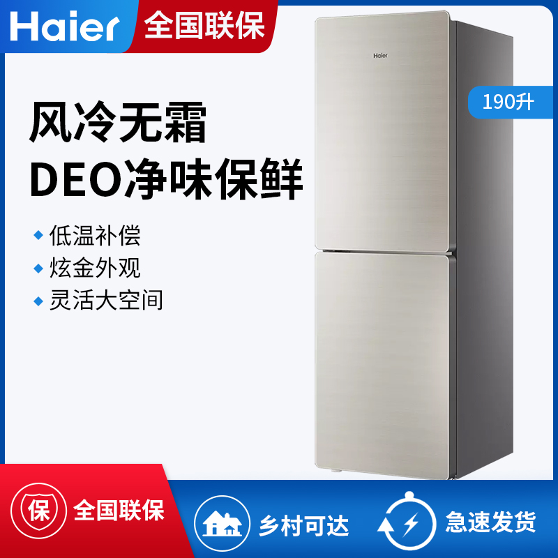 海尔BCD-190WDCO两双门彩晶玻璃无霜家用节能电冰箱【彩晶面板/ 轻奢金】